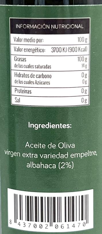 Aceite de oliva virgen extra con albahaca de la Hacienda Ecostean del pueblo de Costean en plena D.O. aceite del Somontano.