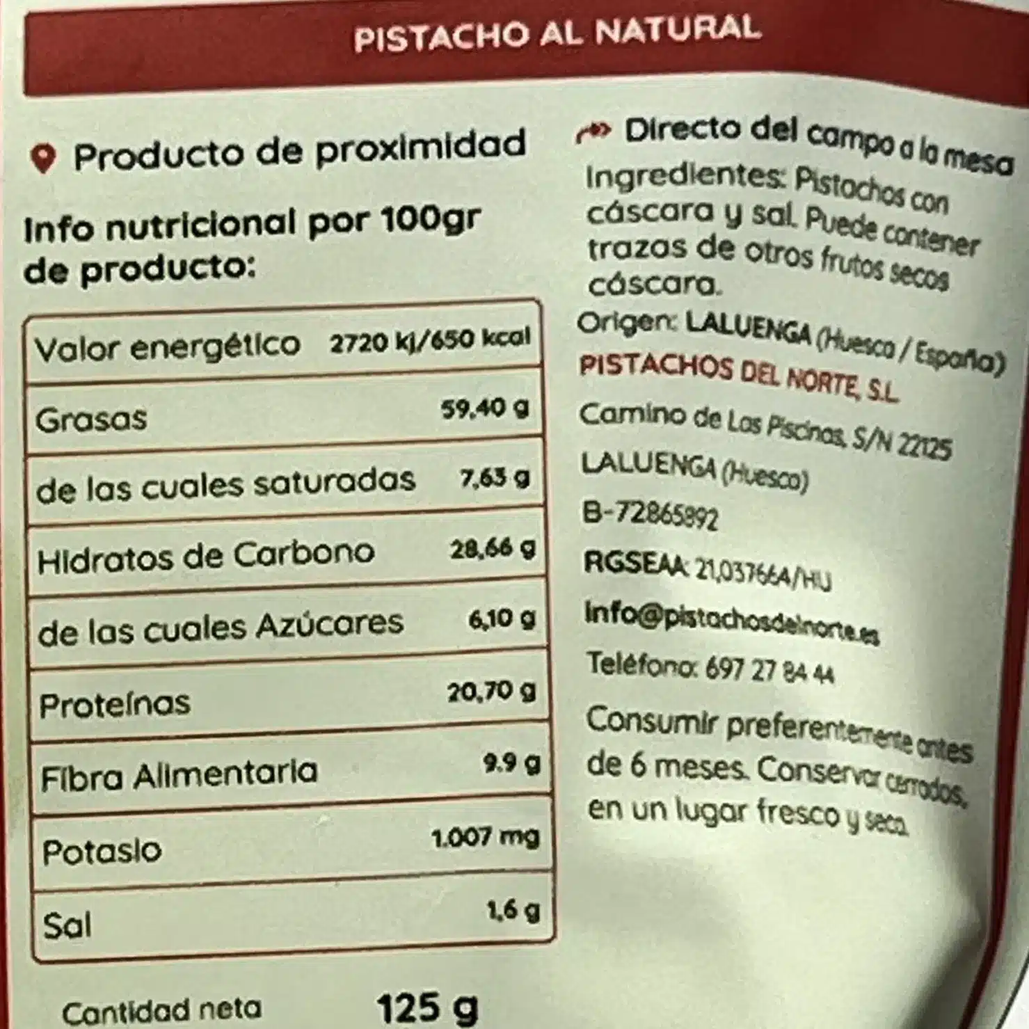 Este pistacho natural tiene una alto contenido en proteína vegetal y numerosos beneficios saludables.